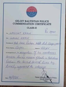 غذر کے گاؤں رؤشن کے چرواہے انصار، محمد خان، محمد اکبر اور وصیت خان نے بہادری کی روشن مثال قائم کردی ہے ۔